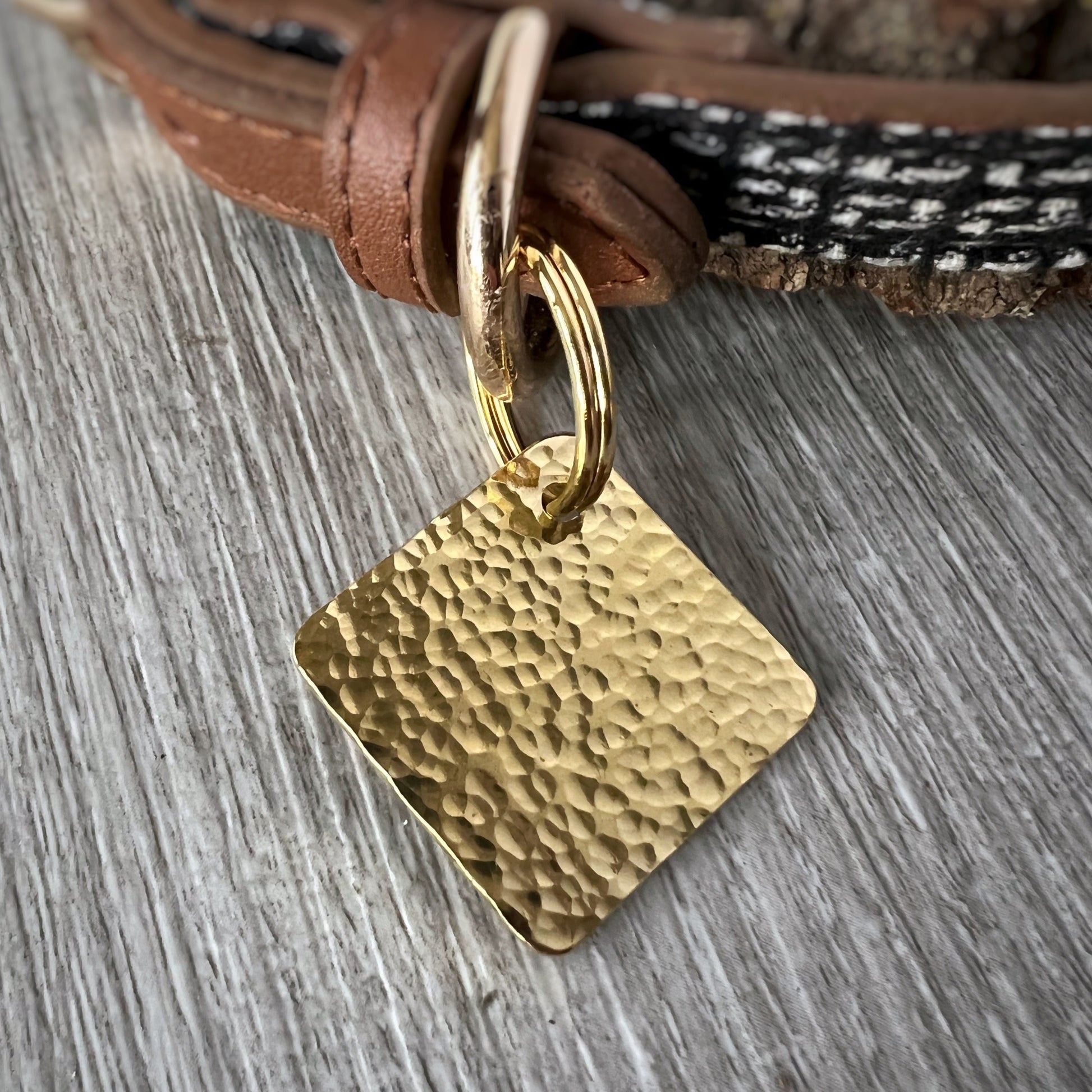 This striking diamond shaped handmade brass dog ID tag, is perfect for the Sunday best outfit.