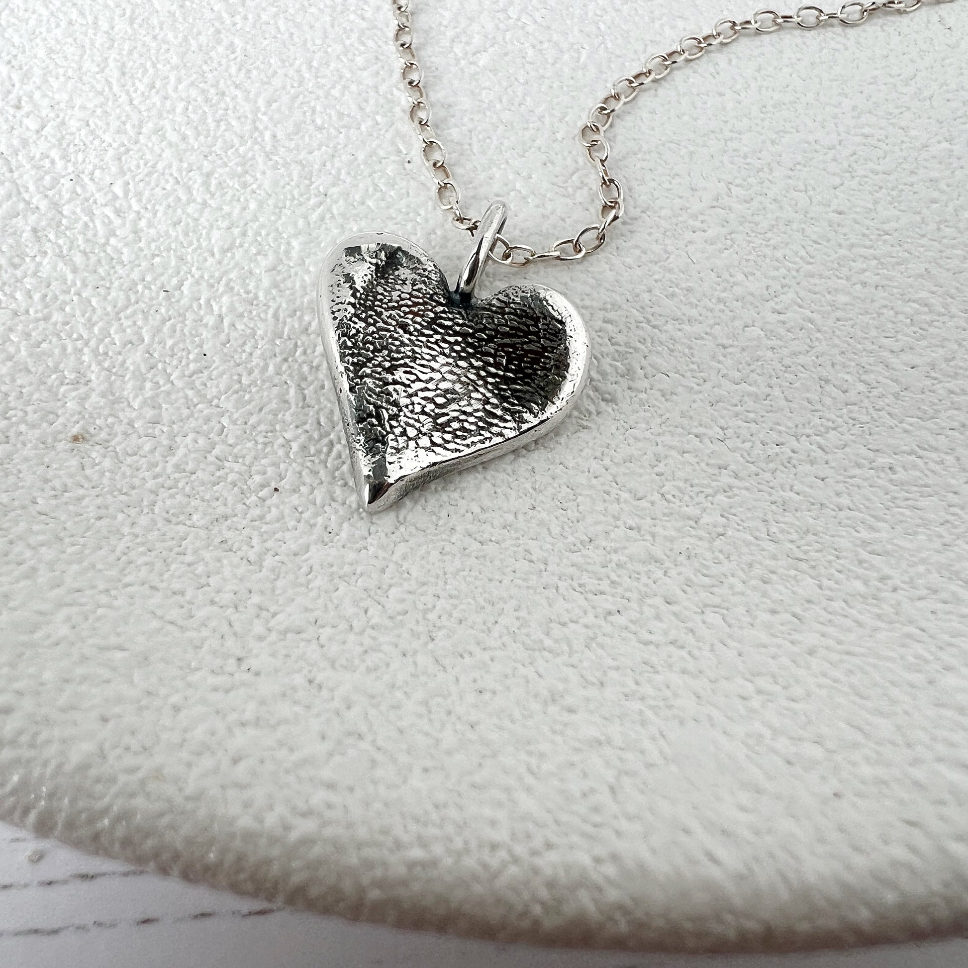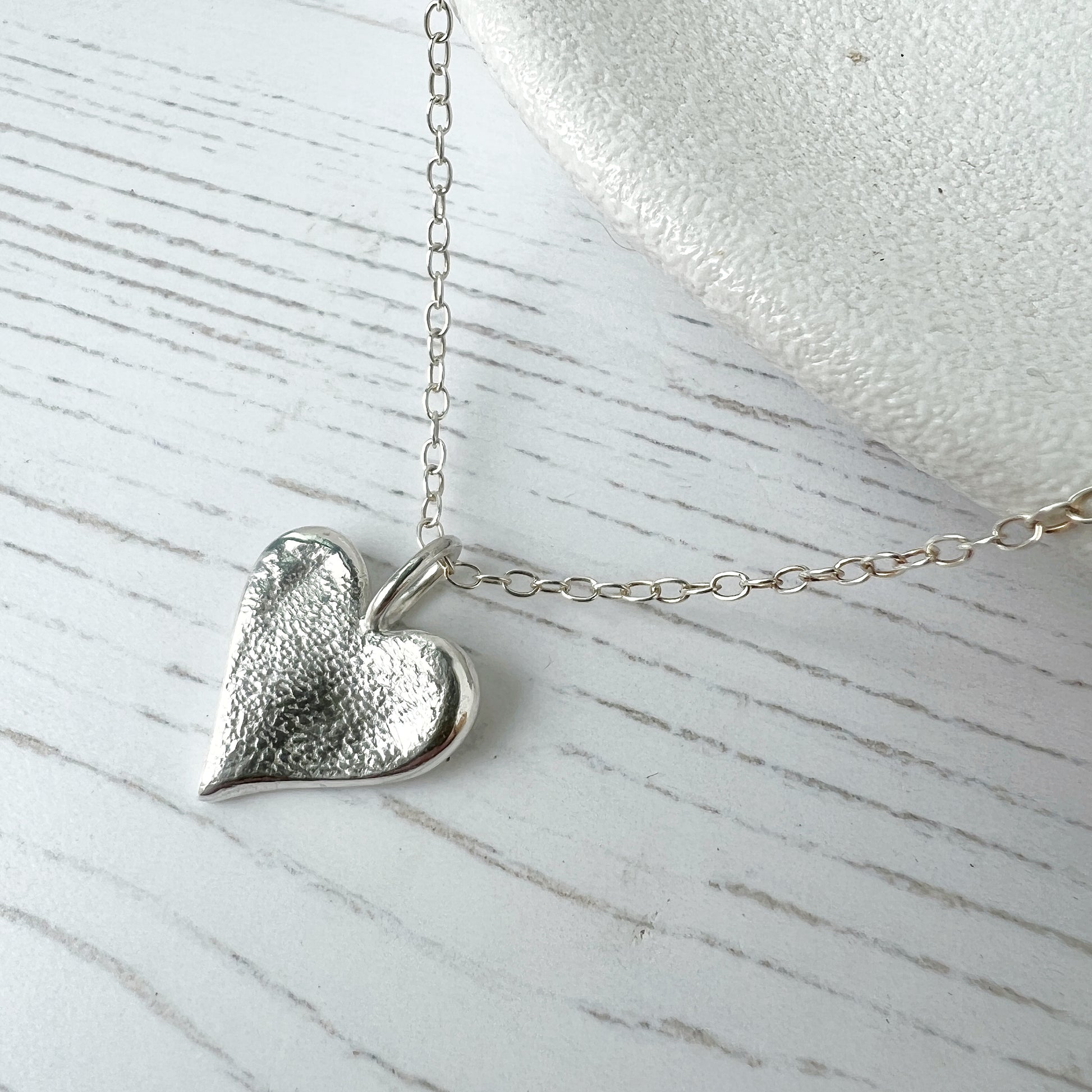 A heart shaped pendant imprinted with your dogs own paw print, taken by you with our easy to use mold making kit. Then handcrafted in sterling silver and sent back to you.